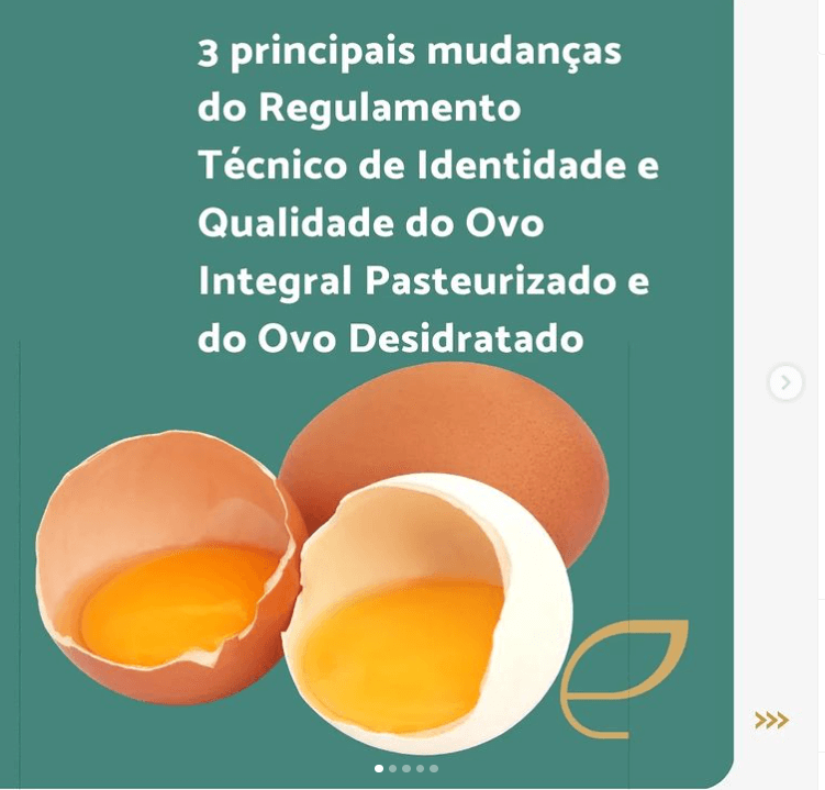 O MAPA publicou, dia 30/12/22, Portaria SDA n° 728, de 26 de dezembro de 2022, que aprova o Regulamento Técnico de Identidade e Qualidade do Ovo Integral Pasteurizado e Ovo Desidratado. Esta Resolução entrou em vigor 01/02/2023. Veja abaixo as principais mudanças:
